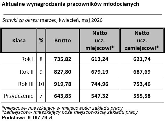 Stawki wynagrodzenia pracowników młodocianych od marca 2026